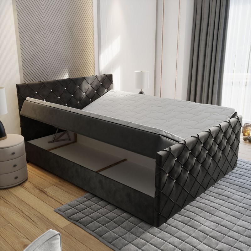 Das Boxspringbett MANDI ist ein echtes Funktionswunder: Es verfügt über integrierte, große Bettkästen, die Ihnen maximalen Stauraum für Bettwäsche und Kissen bieten. Der integrierte Bonell-Matratze sorgt für ein Liegegefühl der Extraklasse und garantiert unvergleichlichen Liegekomfort – Nacht für Nacht. Erleben Sie pure Entspannung!