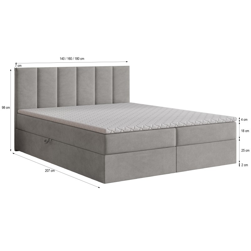 Masseno Boxspringbett MERIL mit Bettkästen 180x200 cm - Grau, COSMIC 160