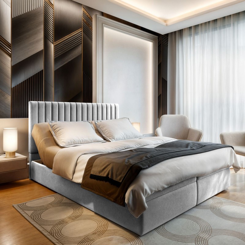 Masseno Boxspringbett MURLO mit Bettkästen 180x200 cm - Hellgrau, PAROS 05