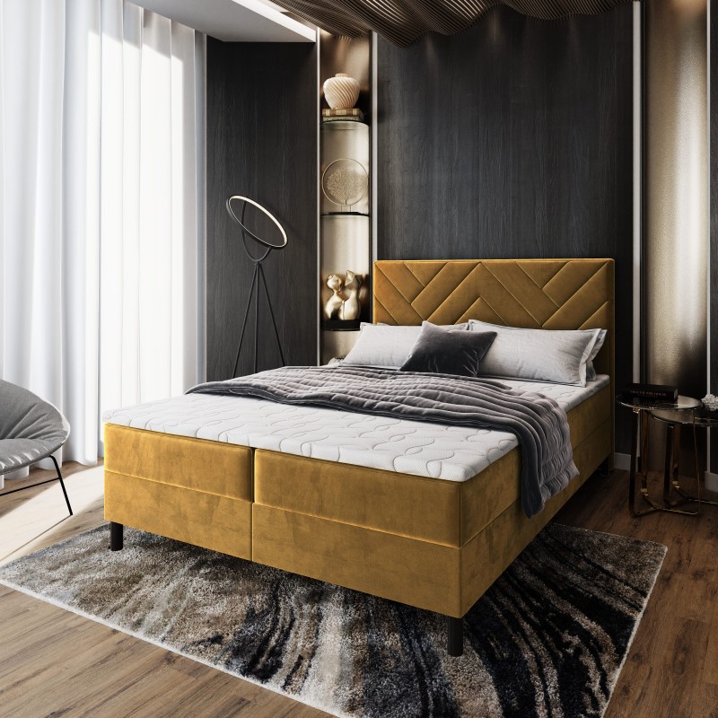 Masseno Boxspringbett ROKIS mit Bettkästen 160x200 cm - Gelb, MONOLITH 48