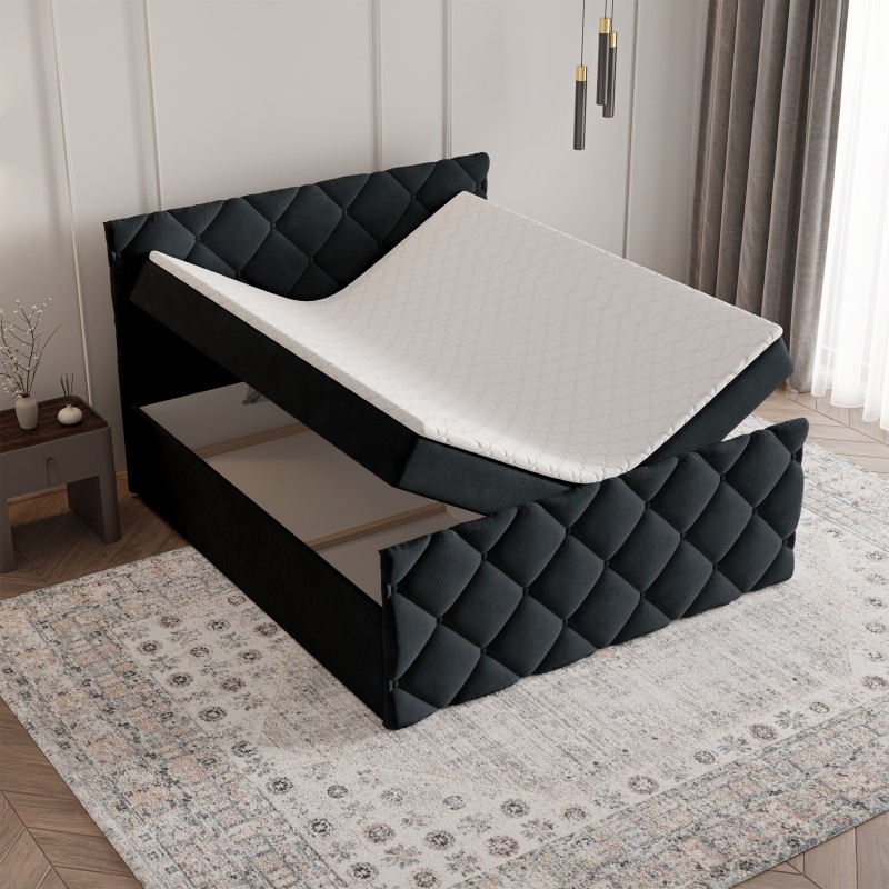 Masseno Boxspringbett ROVARI mit Bettkästen 180x200 cm - Schwarz, KRONOS 07