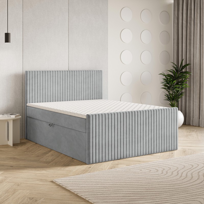 Masseno Boxspringbett TERVAN mit Bettkästen 160x200 cm - Hellgrau, PAROS 05