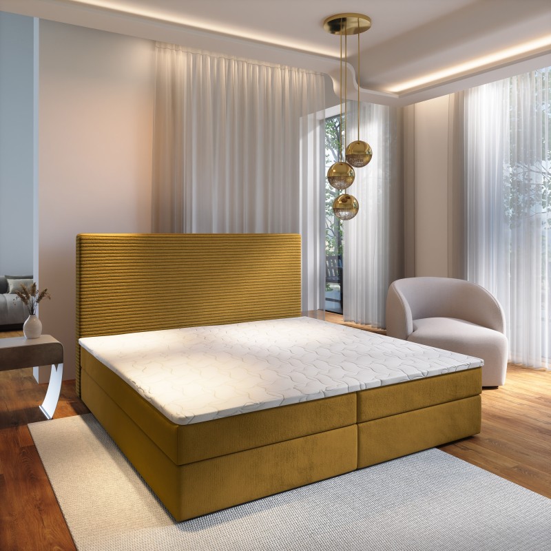 Masseno Boxspringbett GIARRO mit Bettkästen 140x200 cm - Gelb, POSO 01 + KRONOS 01