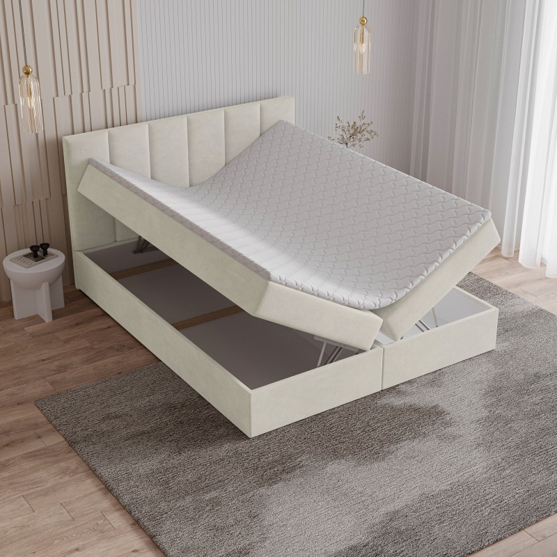 - Öffnungshilfe: Ein cleverer Mechanismus zum Anheben der Matratze, der den Zugang zu den Bettkästen erheblich erleichtert. Die Unterstützungsfunktion reduziert das Gewicht beim Anheben, übernimmt einen Großteil der Last und sorgt für eine mühelose und bequeme Handhabung.