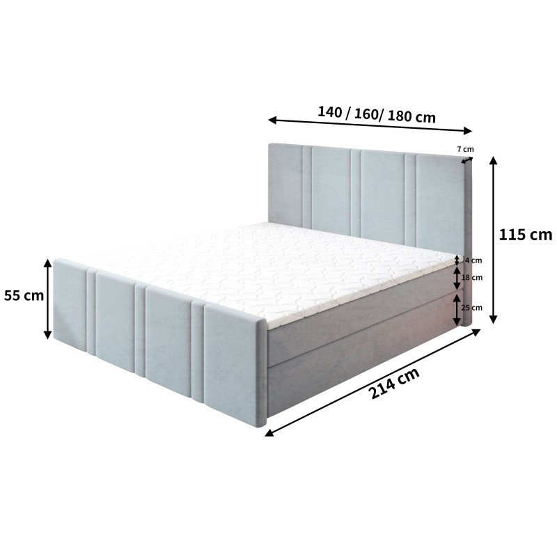 Masseno Boxspringbett COMOZA mit Bettkästen 180x200 cm - Grau, KRONOS 15
