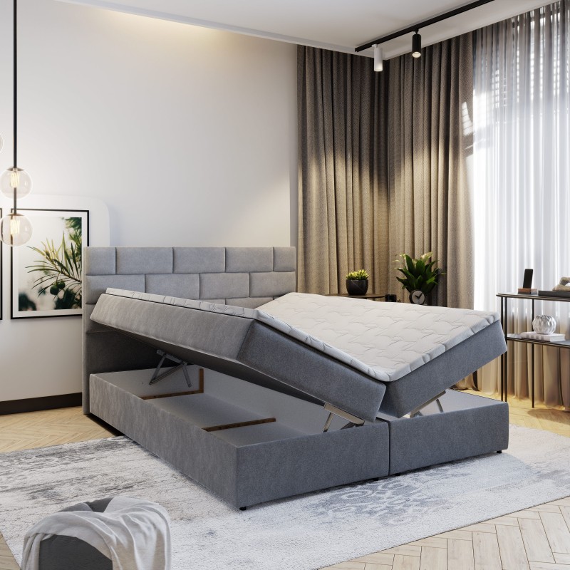 Masseno Boxspringbett KERLO mit Bettkästen 160x200 cm - Hellgrau, INARI 91