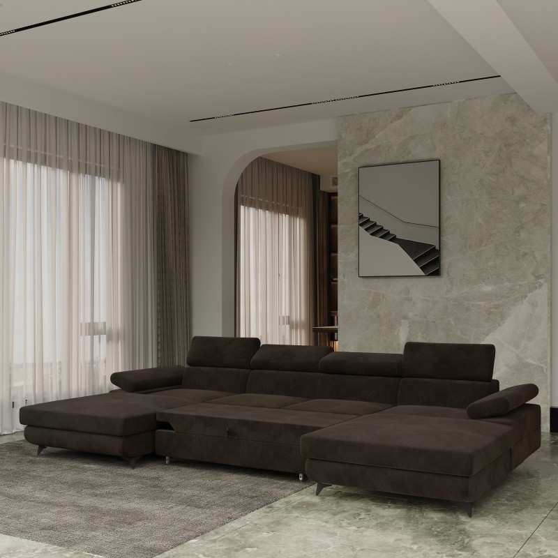 Masseno Ecksofa DETTI mit Schlaffunktion und Bettkasten, Ausziehbares Bettsofa - Braun, MONOLITH 29