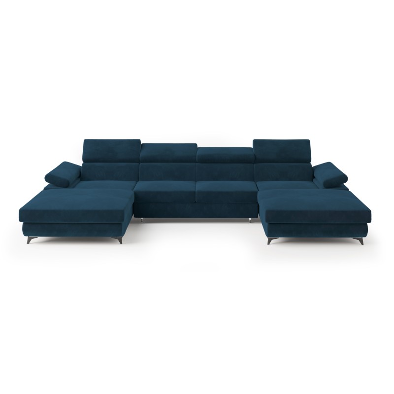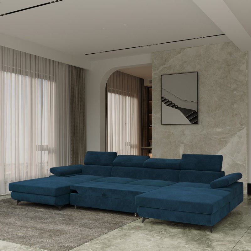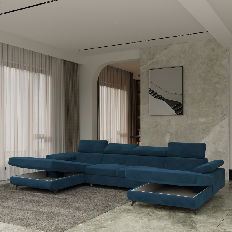 Masseno Ecksofa DETTI mit Schlaffunktion und Bettkasten, Ausziehbares Bettsofa - Blau, MONOLITH 77