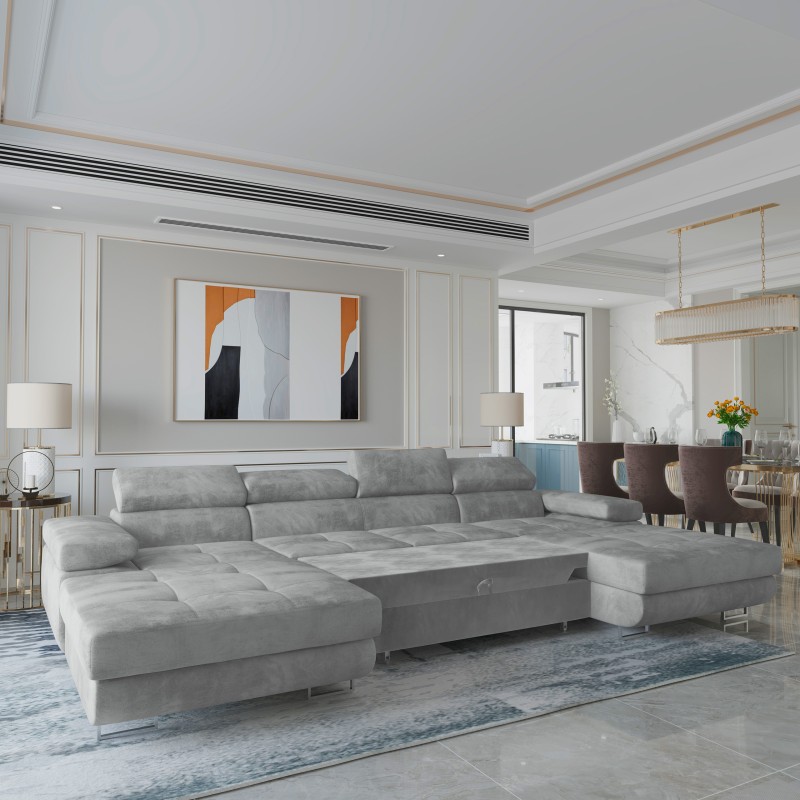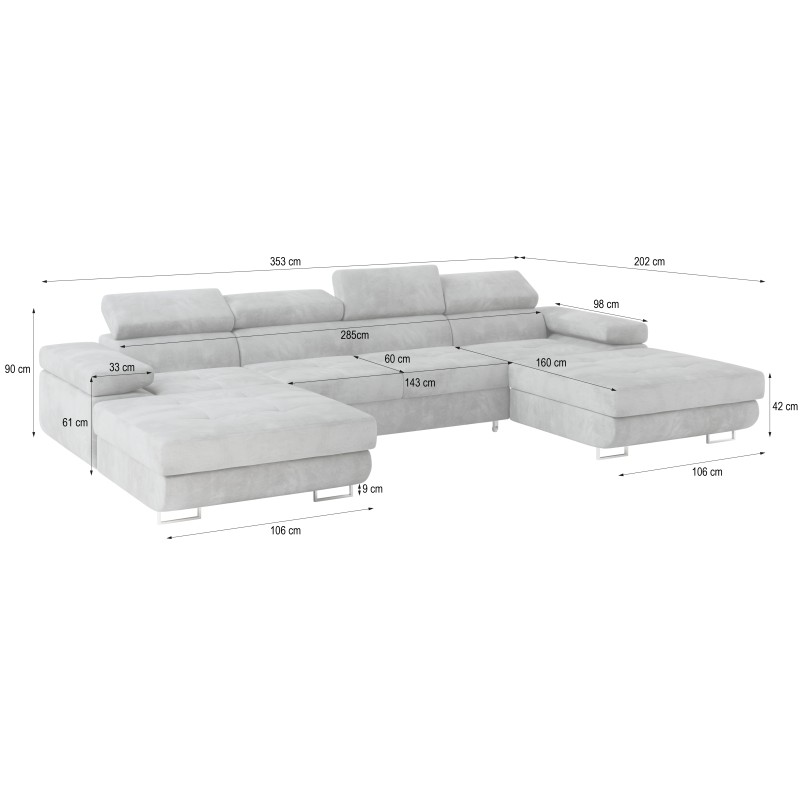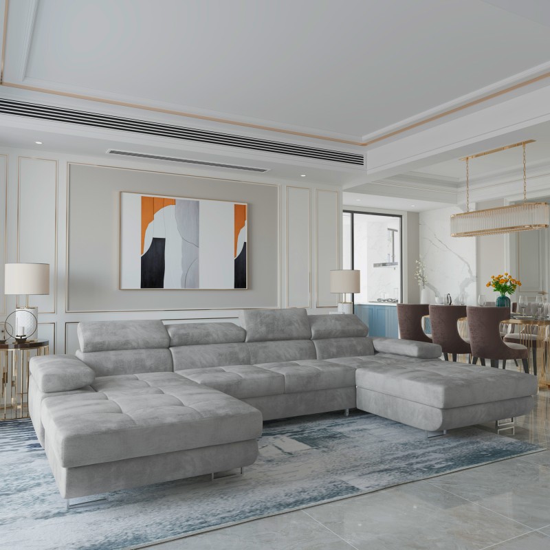 - Das Ecksofa ist mit einer 5-fach verstellbaren Kopfstütze ausgestattet, die es ermöglicht, den Neigungswinkel individuell an deine Bedürfnisse anzupassen. So genießt du maximalen Komfort – beim Lesen, Fernsehen oder Entspannen nach einem langen Tag.