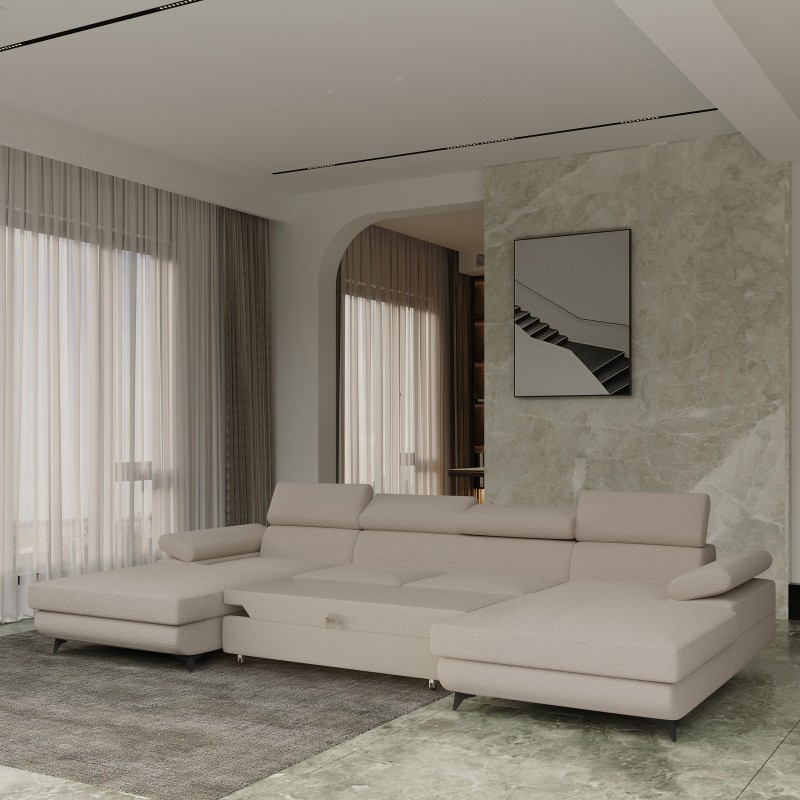 Masseno Ecksofa DETTI mit Schlaffunktion und Bettkasten, Ausziehbares Bettsofa - Beige, QUELLE 05