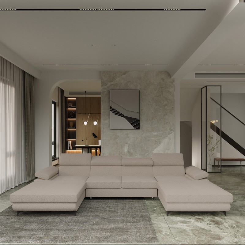 - Das Ecksofa ist mit einer 5-fach verstellbaren Kopfstütze ausgestattet, die es ermöglicht, den Neigungswinkel individuell an deine Bedürfnisse anzupassen. So genießt du maximalen Komfort – beim Lesen, Fernsehen oder Entspannen nach einem langen Tag.