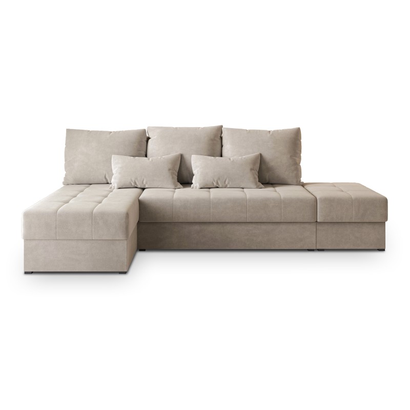 Masseno Ecksofa NORVI mit Schlaffunktion und Bettkasten, Ausziehbares Bettsofa - Beige, PAROS 02