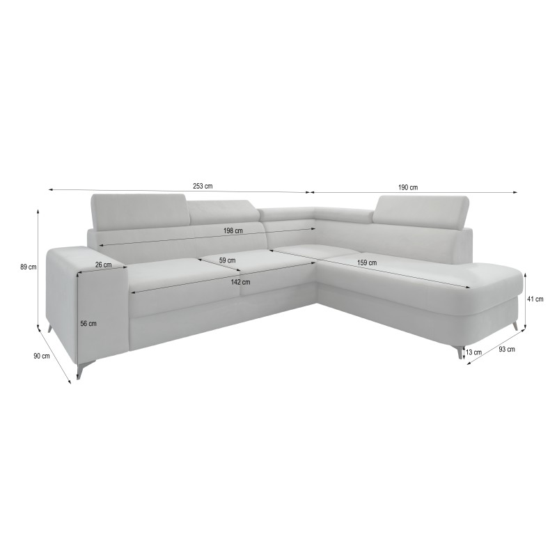 - Das Ecksofa ist mit einer 5-fach verstellbaren Kopfstütze ausgestattet, die es ermöglicht, den Neigungswinkel individuell an deine Bedürfnisse anzupassen. So genießt du maximalen Komfort – beim Lesen, Fernsehen oder Entspannen nach einem langen Tag.