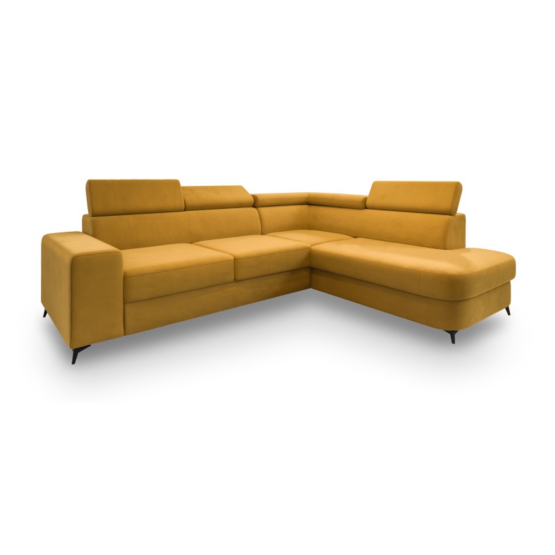 Masseno Ecksofa ALVORO mit Schlaffunktion und Bettkasten, Ausziehbares Bettsofa - Gelb, MATT VELVET 48