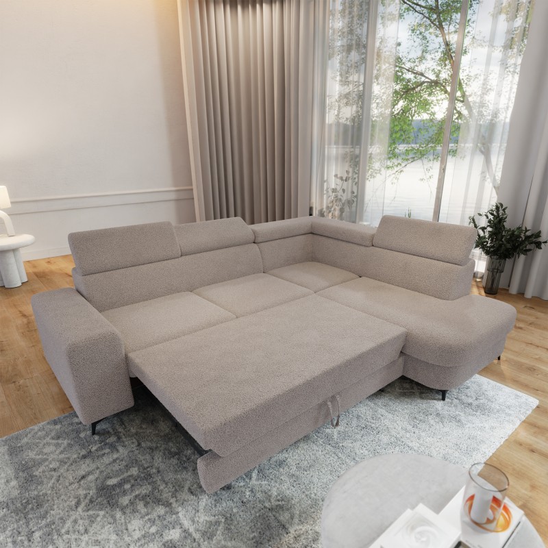 Masseno Ecksofa ALVORO mit Schlaffunktion und Bettkasten, Ausziehbares Bettsofa - Beige, QUELLE 05