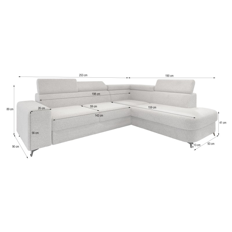 - Das Ecksofa ist mit einer 5-fach verstellbaren Kopfstütze ausgestattet, die es ermöglicht, den Neigungswinkel individuell an deine Bedürfnisse anzupassen. So genießt du maximalen Komfort – beim Lesen, Fernsehen oder Entspannen nach einem langen Tag.