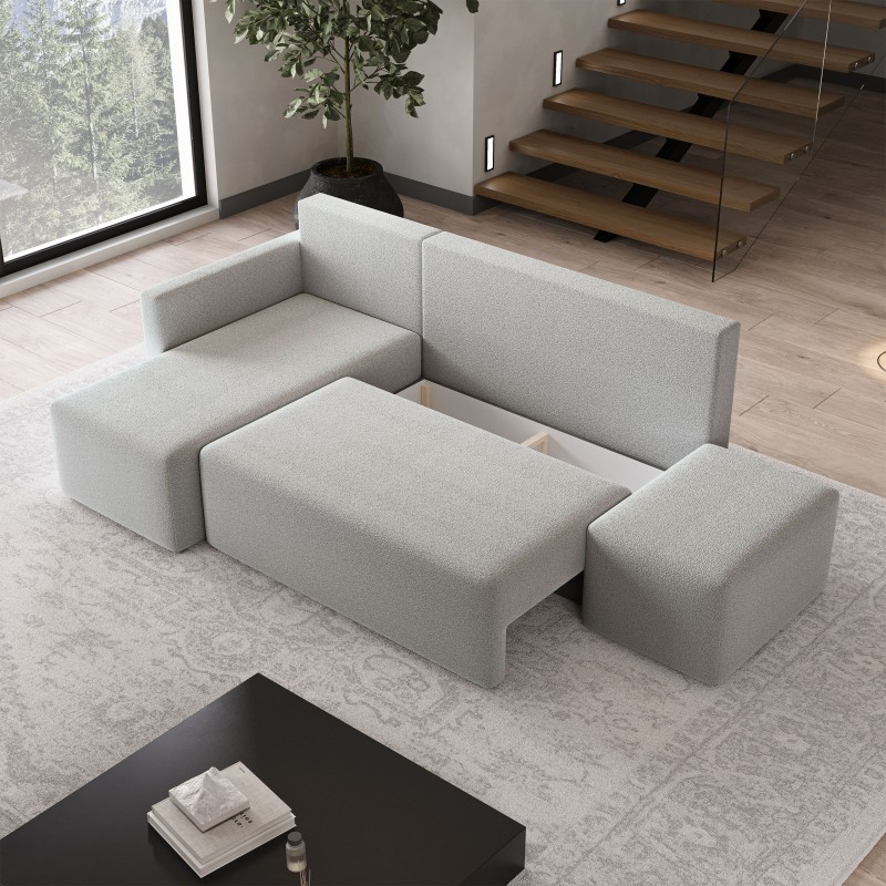 Masseno Ecksofa VELOTTI mit Schlaffunktion und Bettkasten, Ausziehbares Bettsofa - Hellgrau, QUELLE 83