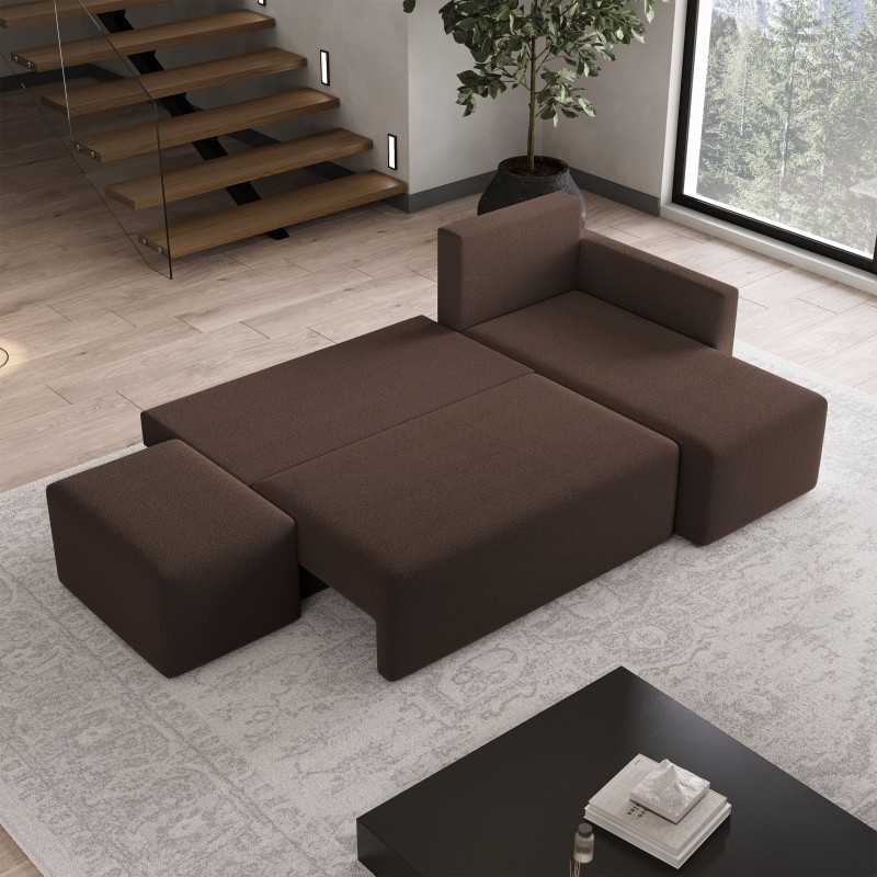 Masseno Ecksofa VELOTTI mit Schlaffunktion und Bettkasten, Ausziehbares Bettsofa - Braun, QUELLE 25