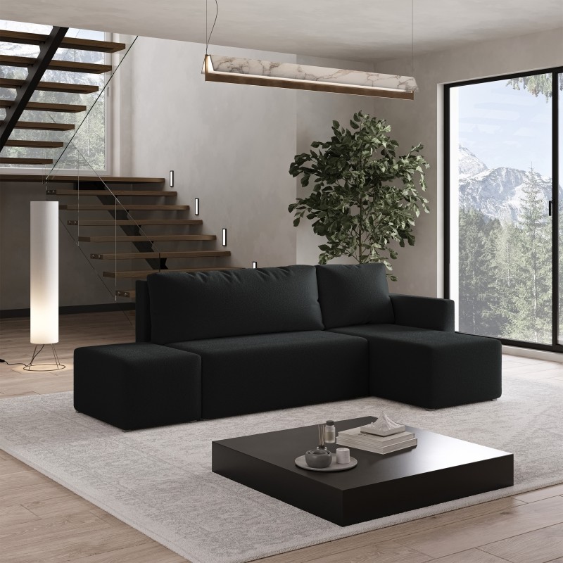 Masseno Ecksofa VELOTTI mit Schlaffunktion und Bettkasten, Ausziehbares Bettsofa - Schwarz, QUELLE 100