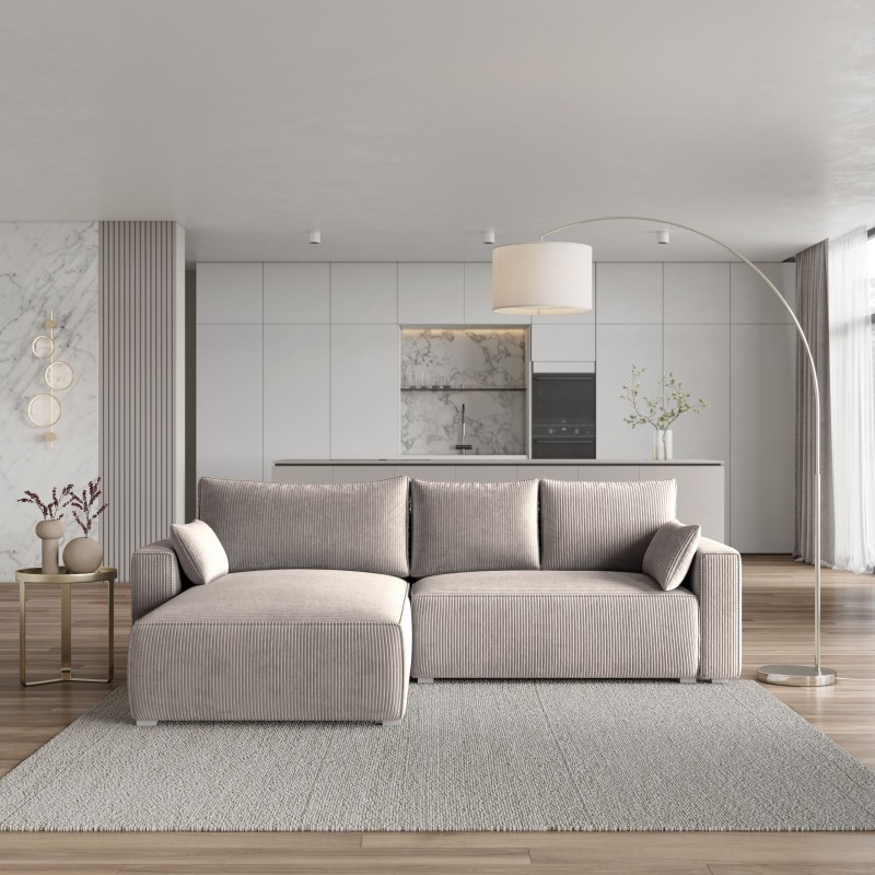Masseno Ecksofa FORIL mit Schlaffunktion und Bettkasten, Ausziehbares Bettsofa - Beige, POSO 02