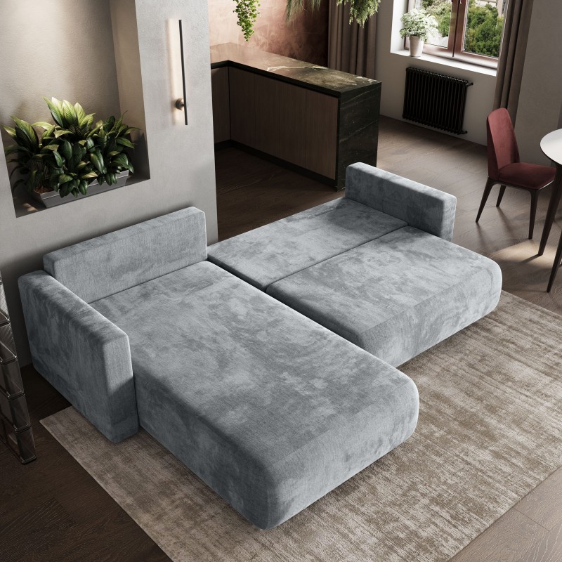 Masseno Ecksofa TURIN mit Schlaffunktion und Bettkasten, Ausziehbares Bettsofa - Hellgrau, MONOLITH 84