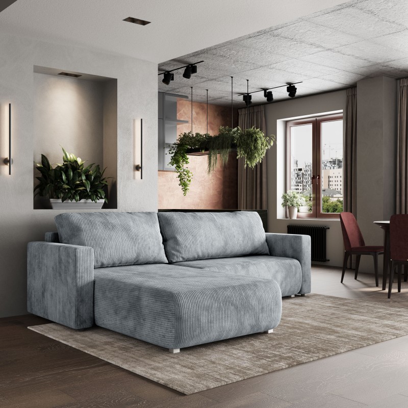 Masseno Ecksofa TURIN mit Schlaffunktion und Bettkasten, Ausziehbares Bettsofa - Hellgrau, POSO 55