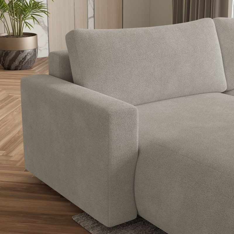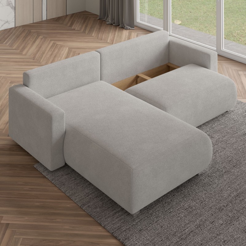 Masseno Ecksofa TURIN mit Schlaffunktion und Bettkasten, Ausziehbares Bettsofa - Hellgrau, NOW OR NEVER 83