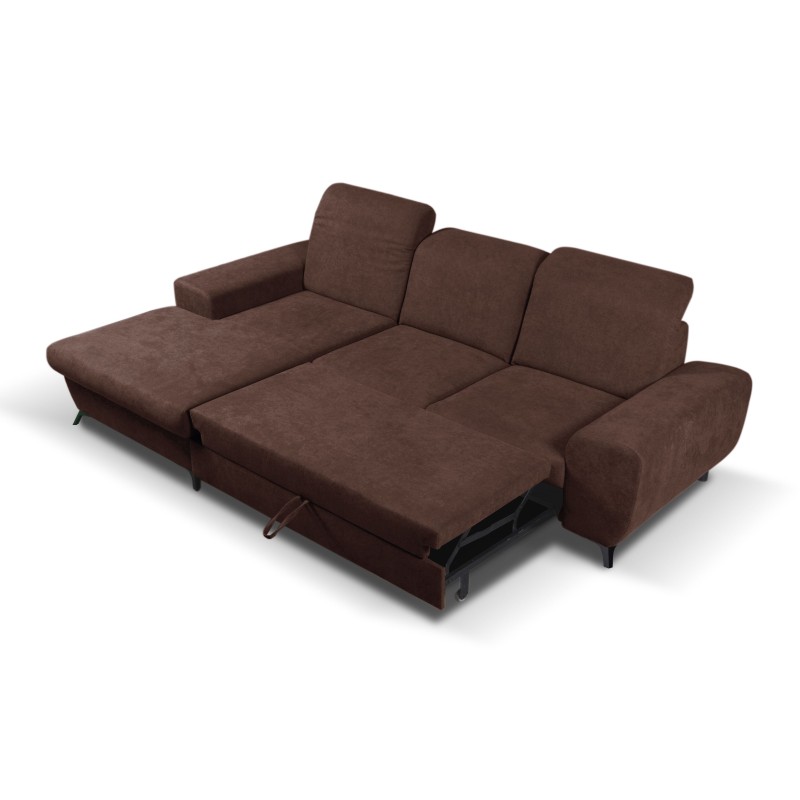 Masseno Ecksofa LUCE mit Schlaffunktion und Bettkasten, Ausziehbares Bettsofa - Braun, AVRA 06