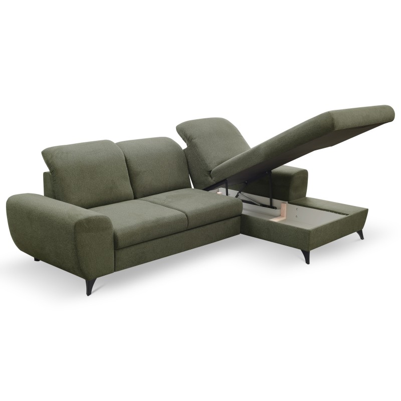 Masseno Ecksofa LUCE mit Schlaffunktion und Bettkasten, Ausziehbares Bettsofa - Olivgrün, AVRA SIC LOFT 10