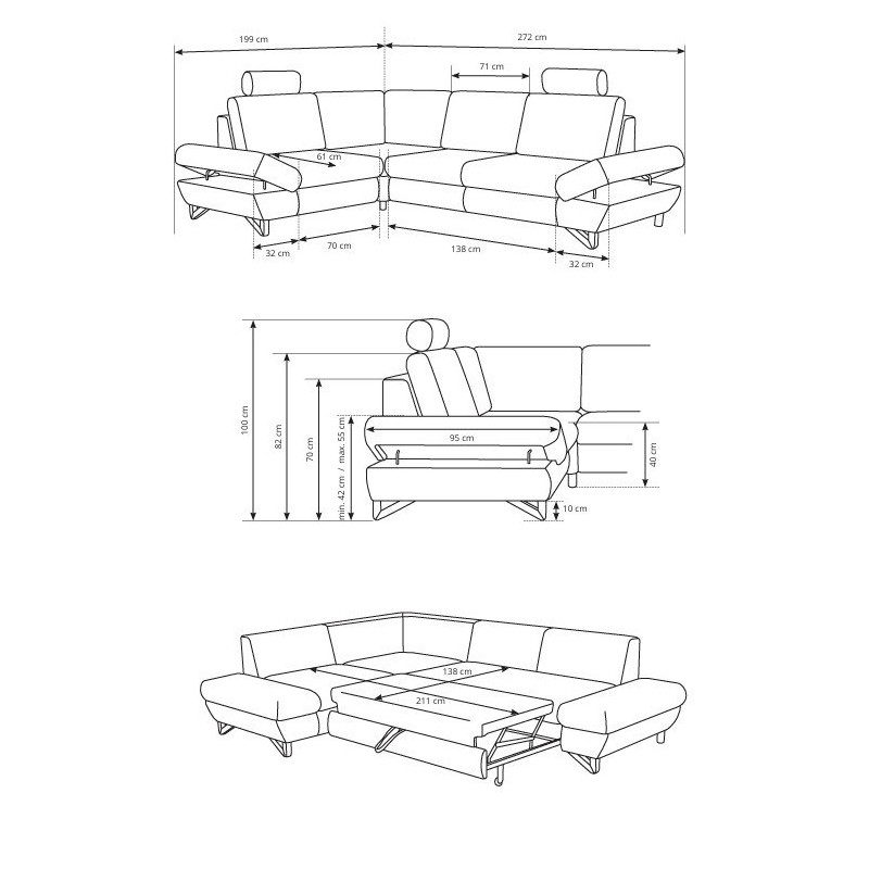- Schlaffunktion – das ausziehbare Sofa eignet sich ideal als Relaxsofa am Tag und als Gästebett in der Nacht.