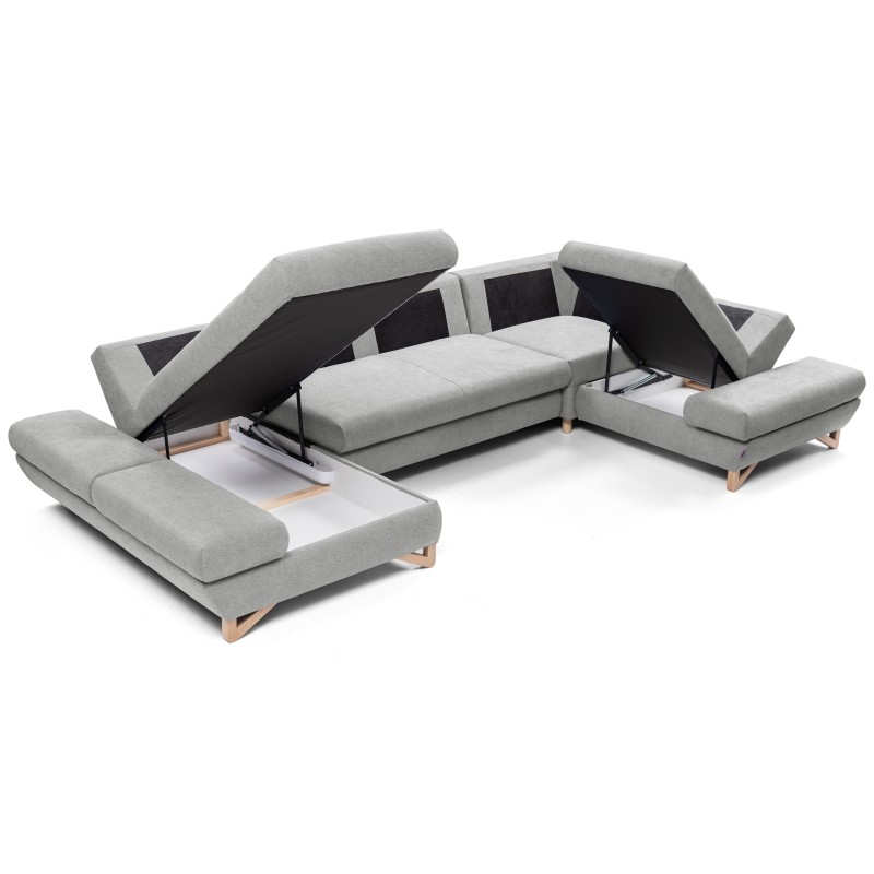Masseno Ecksofa CASA mit Schlaffunktion und Bettkasten, Ausziehbares Bettsofa - Grau, AVRA 16
