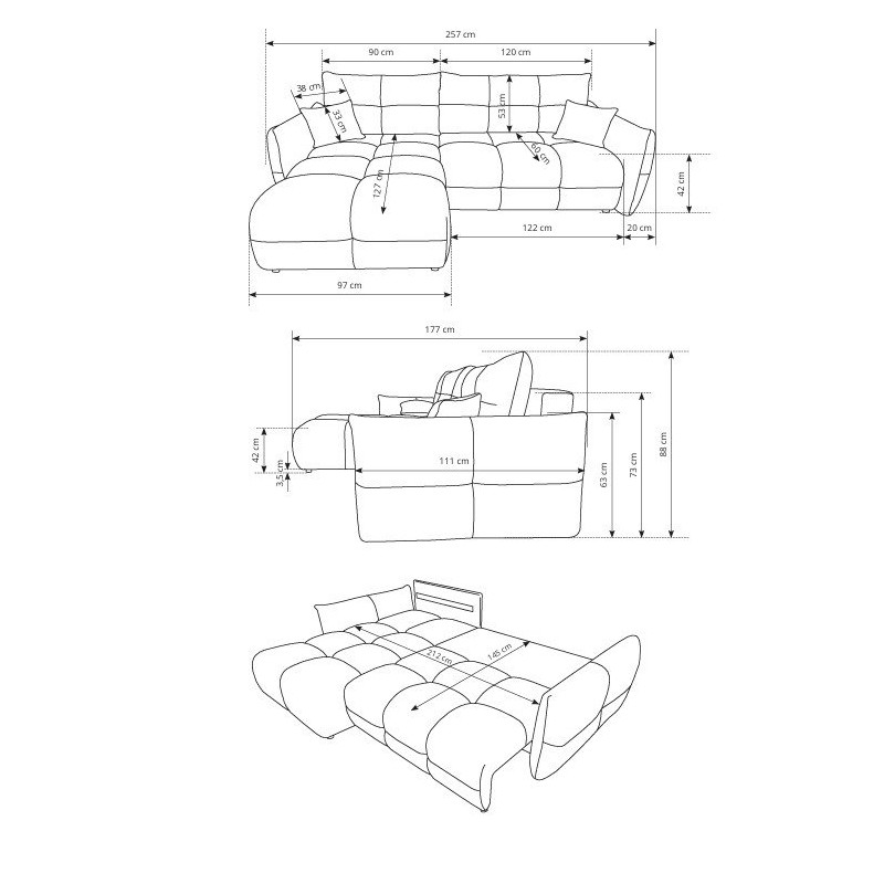- Schlaffunktion – das ausziehbare Sofa eignet sich ideal als Relaxsofa am Tag und als Gästebett in der Nacht.
