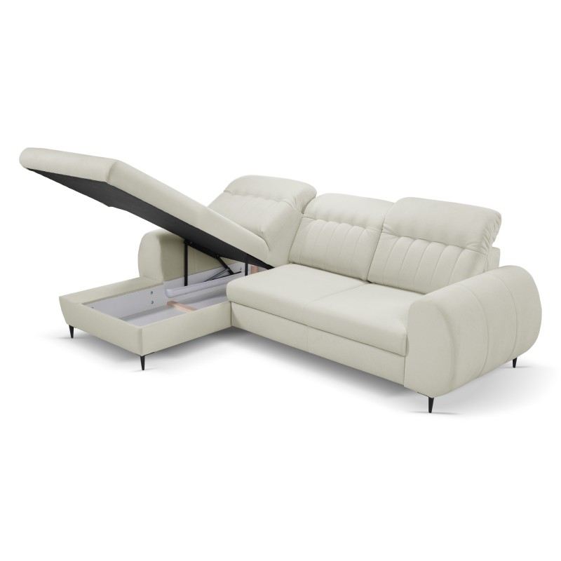 Masseno Ecksofa PURO mit Schlaffunktion und Bettkasten, Ausziehbares Bettsofa - Beige, CASTEL 03