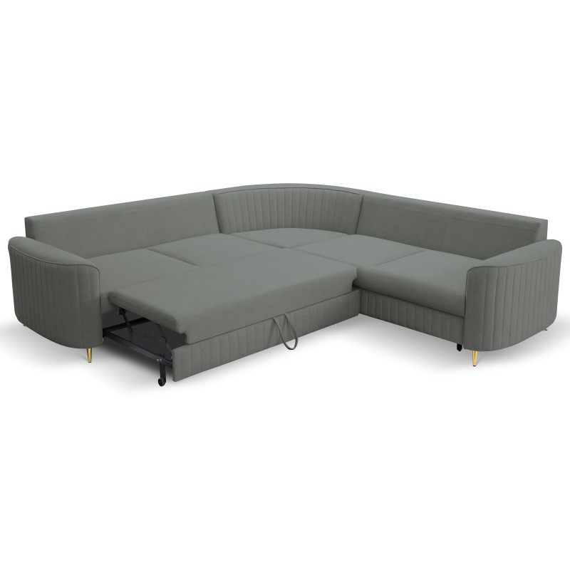 Masseno Ecksofa VELA mit Schlaffunktion und Bettkasten, Ausziehbares Bettsofa - Grau, CASTEL 93