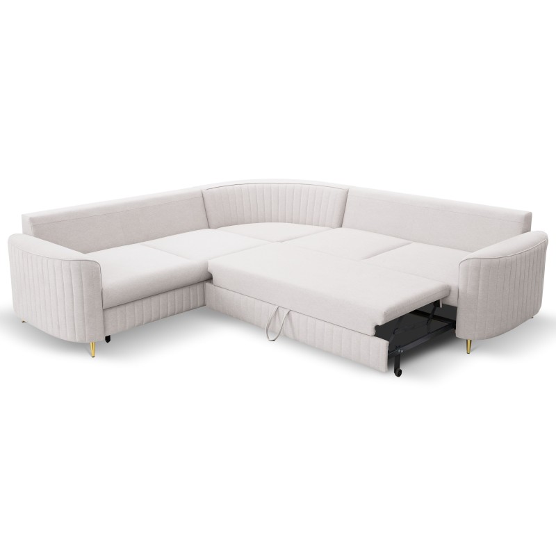 Masseno Ecksofa VELA mit Schlaffunktion und Bettkasten, Ausziehbares Bettsofa - Beige, CASTEL 04