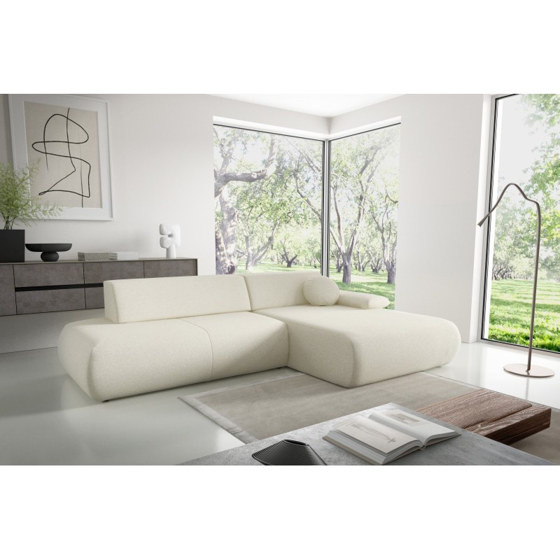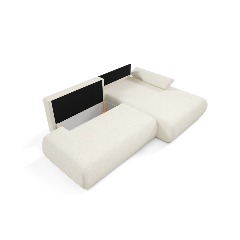 Masseno Ecksofa DELTA mit Schlaffunktion und Bettkasten, Ausziehbares Bettsofa - Creme, PUENTE 03