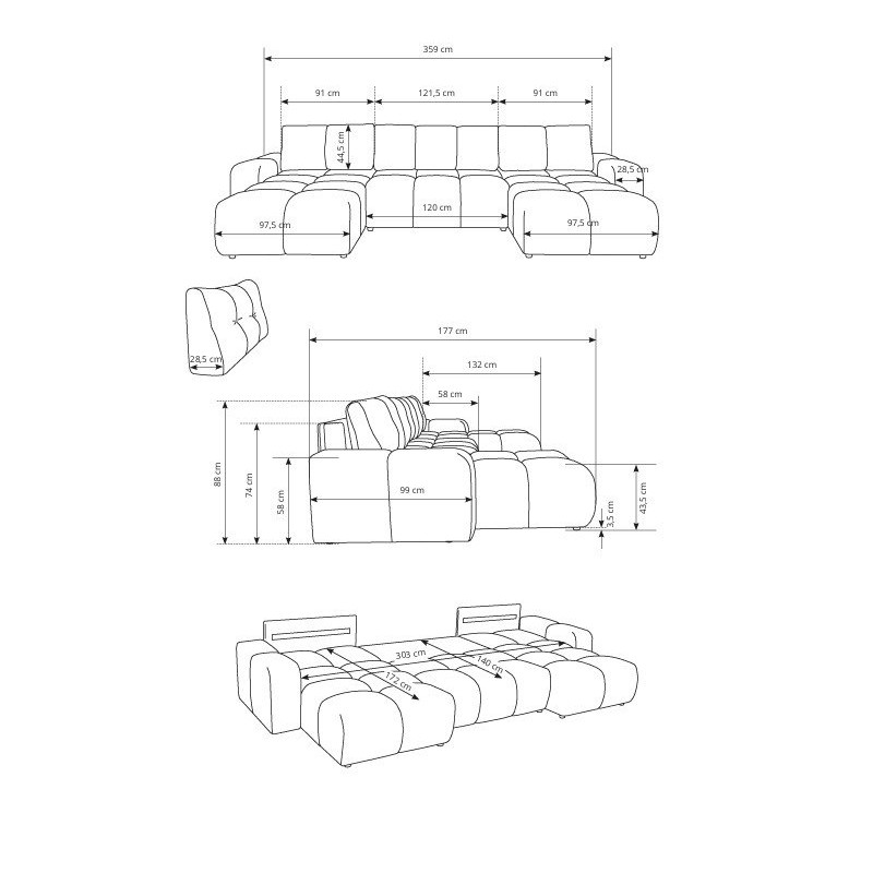 - Liegefläche: 140x303 cm
