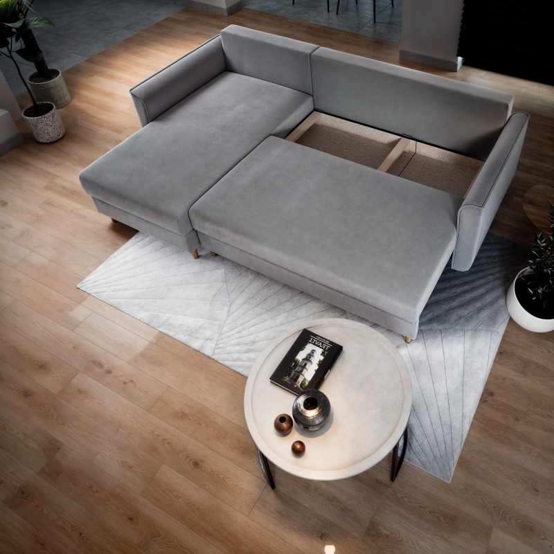 Masseno Ecksofa PISAN mit Schlaffunktion und Bettkasten, Ausziehbares Bettsofa - Hellgrau, PAROS 05