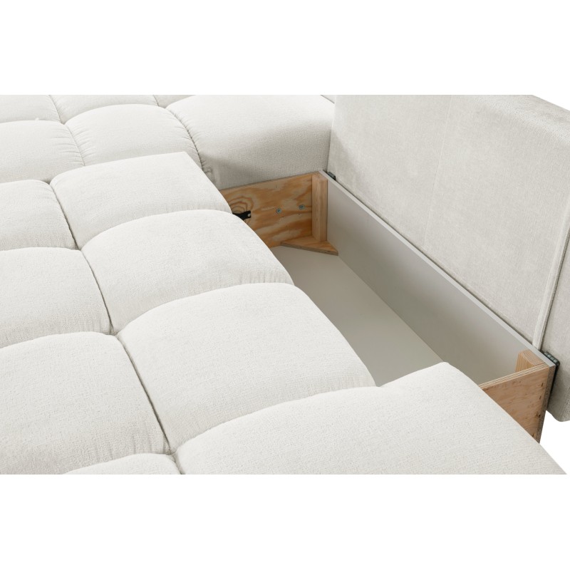 Masseno Ecksofa DUCA mit Schlaffunktion und Bettkasten, Ausziehbares Bettsofa - Creme, PERFECT HARMONY 01