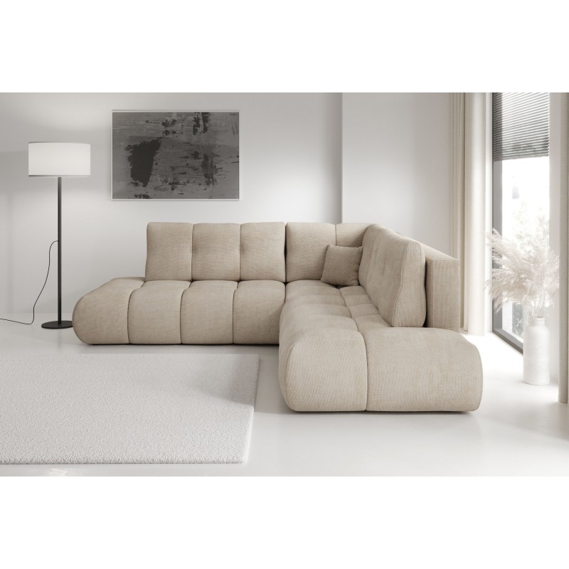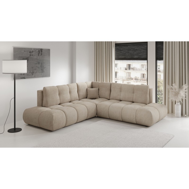 Masseno Ecksofa DUCA mit Schlaffunktion und Bettkasten, Ausziehbares Bettsofa - Beige, FLOW 02