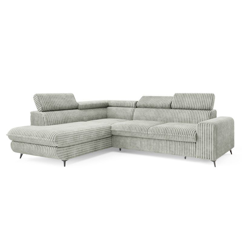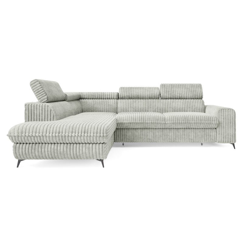 Masseno Ecksofa VELISS mit Schlaffunktion und Bettkasten, Ausziehbares Bettsofa für Wohnzimmer - Hellgrau, TILIA 83