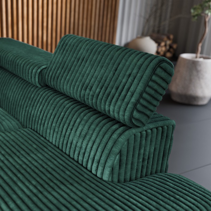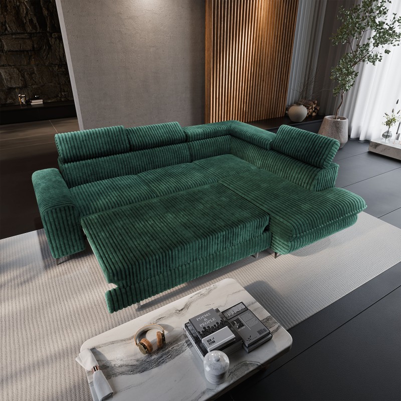 Masseno Ecksofa VELISS mit Schlaffunktion und Bettkasten, Ausziehbares Bettsofa für Wohnzimmer - Grün, TILIA 39