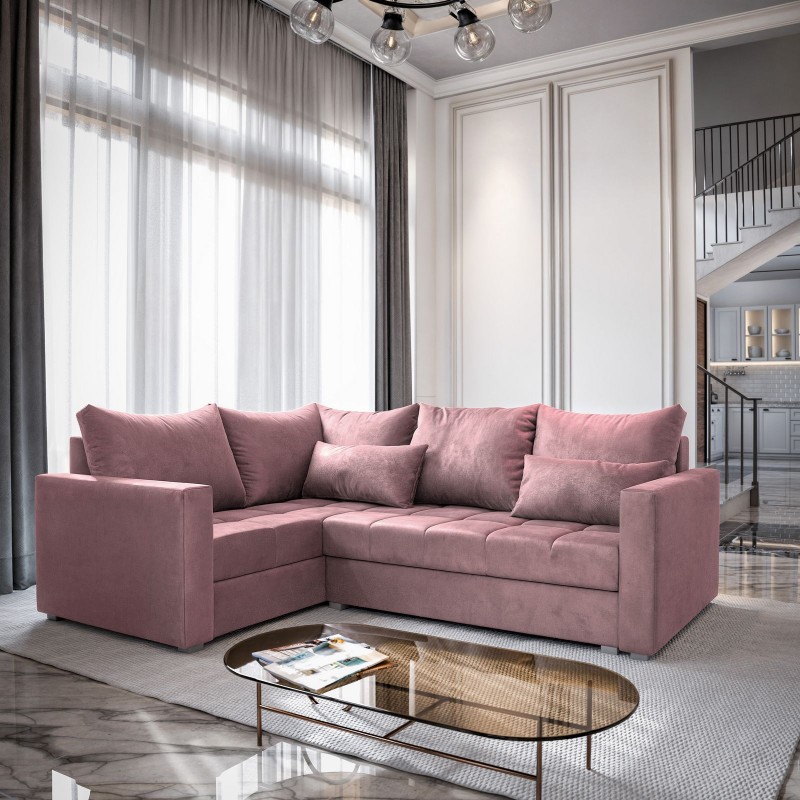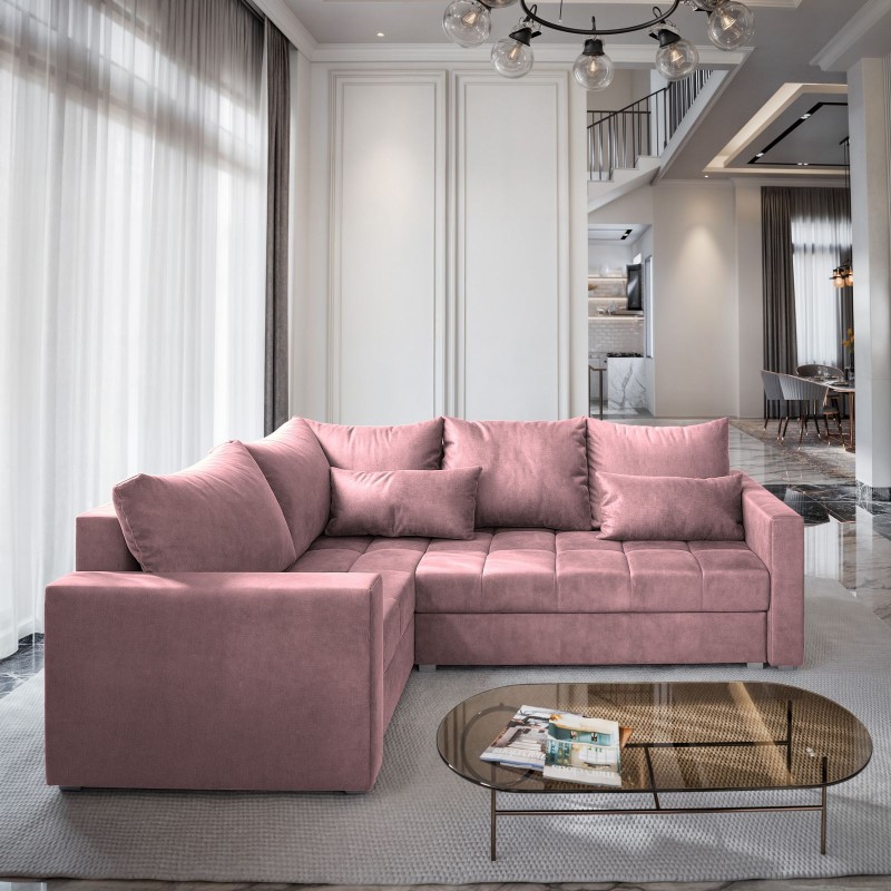Masseno Ecksofa LIRENO mit Schlaffunktion und Bettkasten, Ausziehbares Bettsofa - Rosa, KRONOS 27