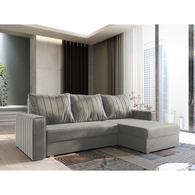 Masseno Ecksofa CARL mit Schlaffunktion und Bettkasten, Ausziehbares Bettsofa - Hellgrau, PAROS 05
