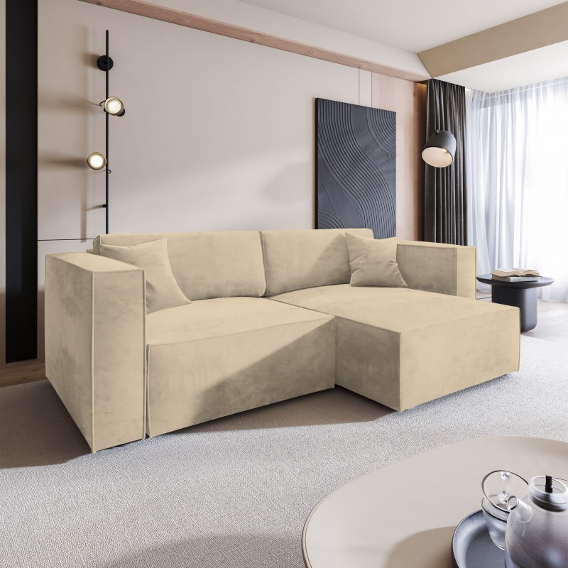 Masseno Ecksofa NERIO mit Schlaffunktion und Bettkasten, Ausziehbares Bettsofa - Creme, MONOLITH 04