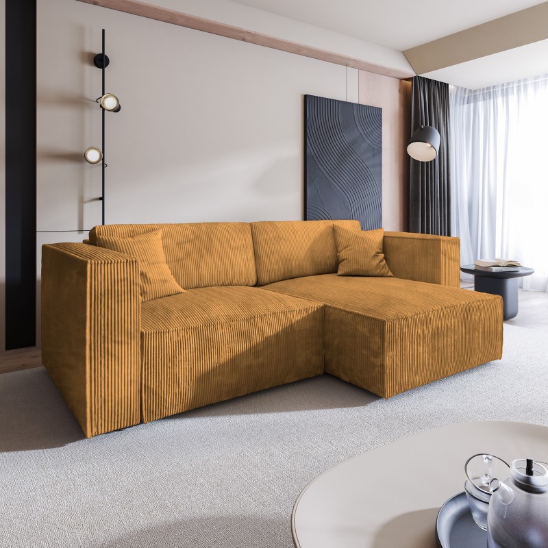 Masseno Ecksofa NERIO mit Schlaffunktion und Bettkasten, Ausziehbares Bettsofa - Gelb, POSO 01