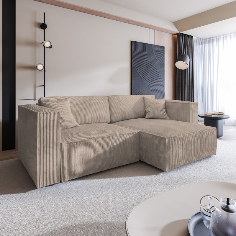 Masseno Ecksofa NERIO mit Schlaffunktion und Bettkasten, Ausziehbares Bettsofa - Beige, POSO 02