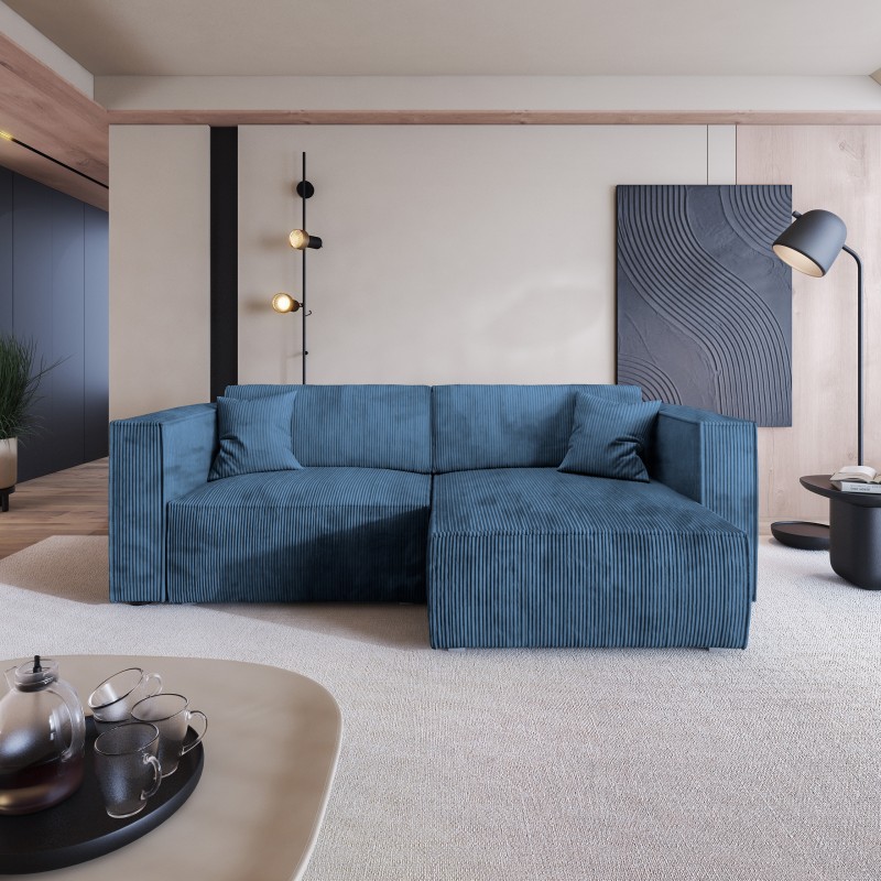 Masseno Ecksofa NERIO mit Schlaffunktion und Bettkasten, Ausziehbares Bettsofa - Blau, POSO 05