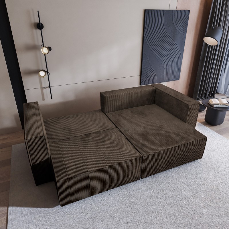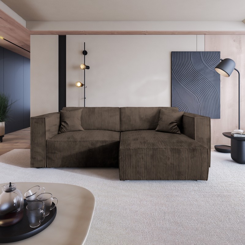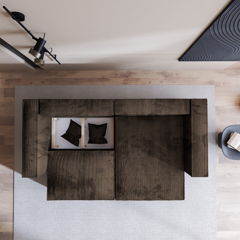Masseno Ecksofa NERIO mit Schlaffunktion und Bettkasten, Ausziehbares Bettsofa - Braun, POSO 06