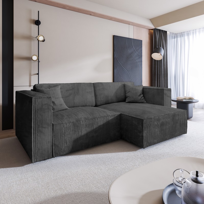 Masseno Ecksofa NERIO mit Schlaffunktion und Bettkasten, Ausziehbares Bettsofa - Graphitfarben, POSO 34
